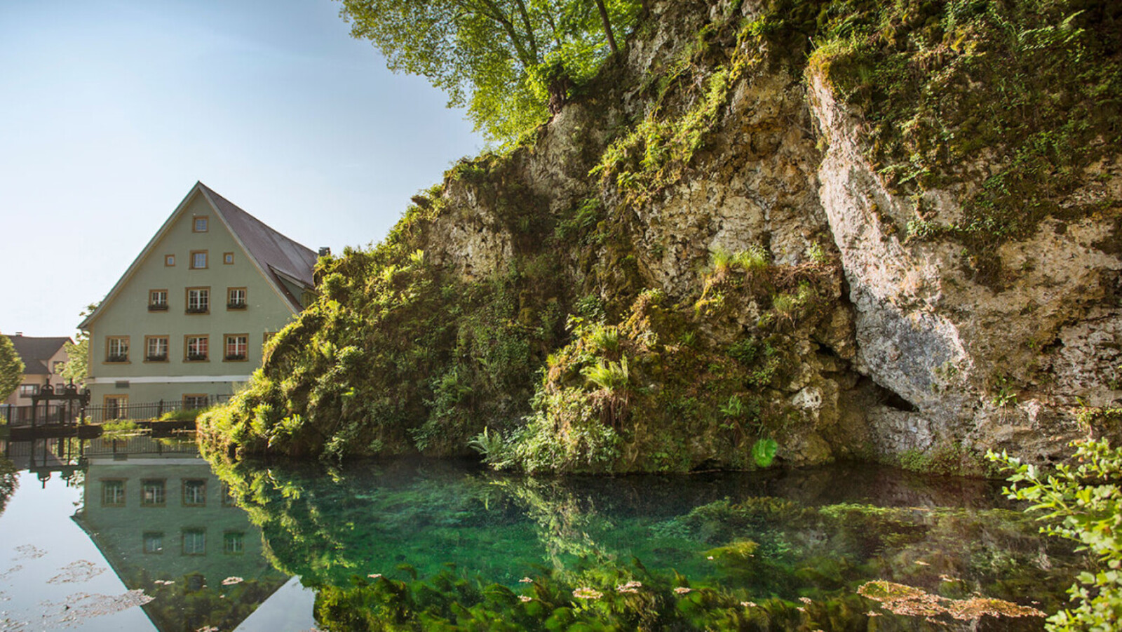 Flüsse sind an ihrer Quelle oft nur ein Rinnsal. Nicht so die Brenz! Kaum ist sie an der Oberfläche, wird aus ihr ein richtig breites Fließgewässer. Über 1000 Liter pro Sekunde schießen hinter der alten Hammerschmiede in Königsbronn aus dem Boden. In einem blaugrünen Quelltopf sammelt sich das eiskalte Wasser aus den tiefen Karsthöhlen und beginnt seine Reise in den Süden. Schon auf ihrem ersten Flusskilometer bekommt die Brenz Zuwachs.
